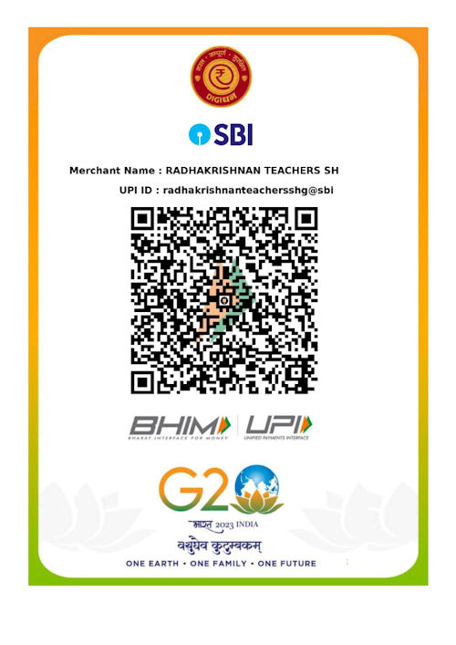 Union Bank of India Account Name: DR RADHAKRISHNAN TEACHERS SELF Account Number: 249211010000046 IFSC: UBIN0824925 MICR: 500026155